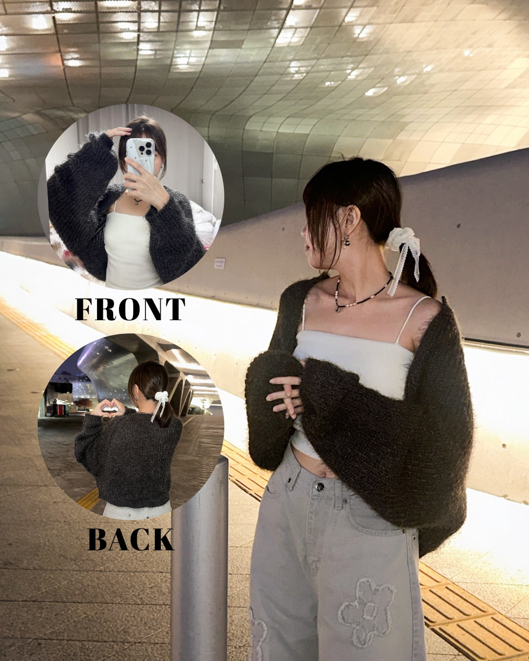 [預訂] \可愛綁結毛毛外套/ Mohair Knit Tie Outer