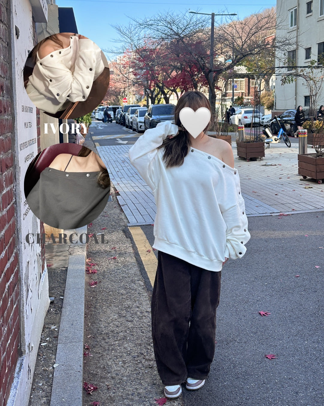 [現貨] \側綁繩反領設計/ Off-Shoulder Zip Top