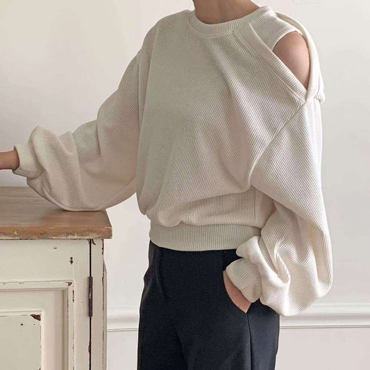 [預訂] \知性氣質/ 單邊露膊泡泡袖Top