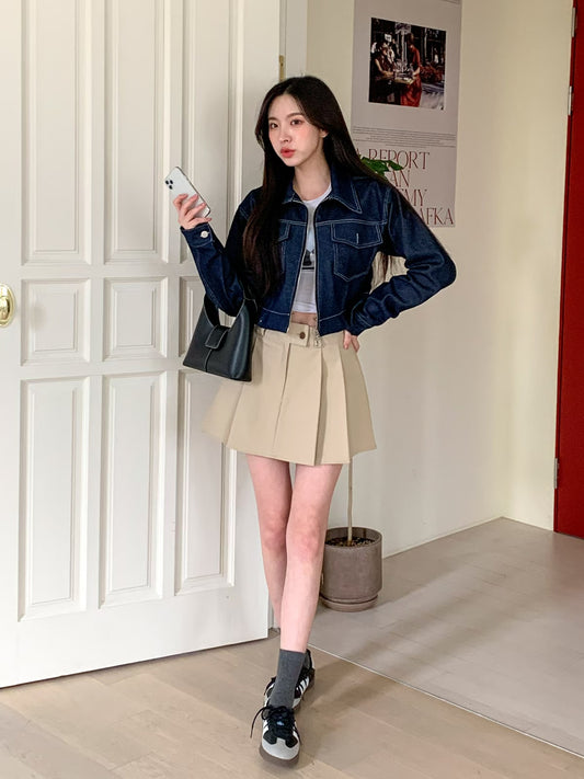 [預訂] \中腰木紋鈕扣/ 學院風百褶裙