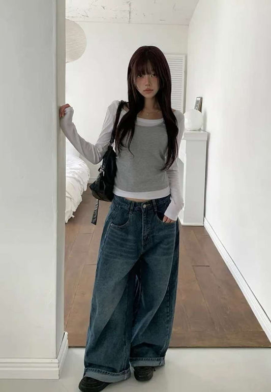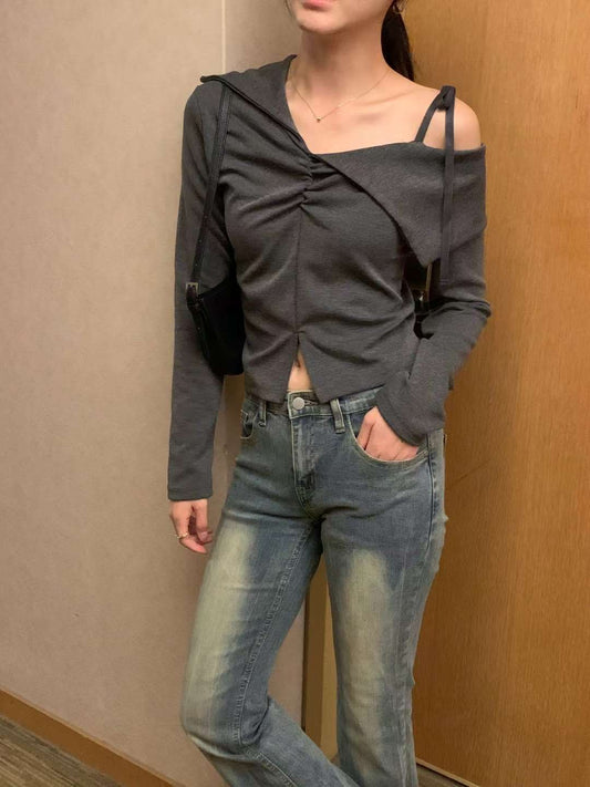 [預訂] \絲帶綁結/ 捲邊層次露肩Top