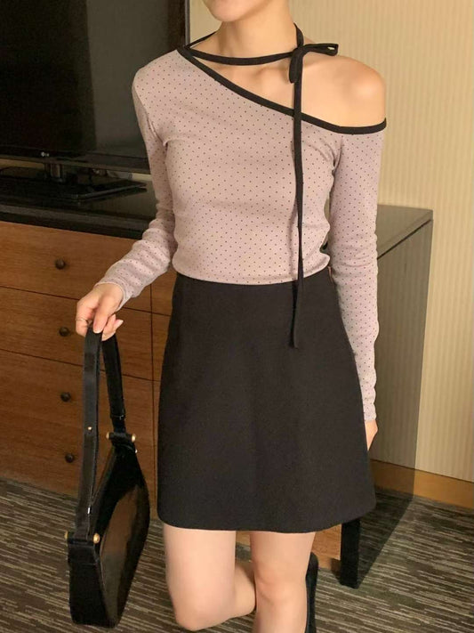 [預訂] \附頸帶/ 波點疊布長袖Top