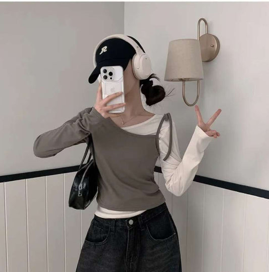 [預訂] \優雅知性美/ 假兩件束胸綁結Top