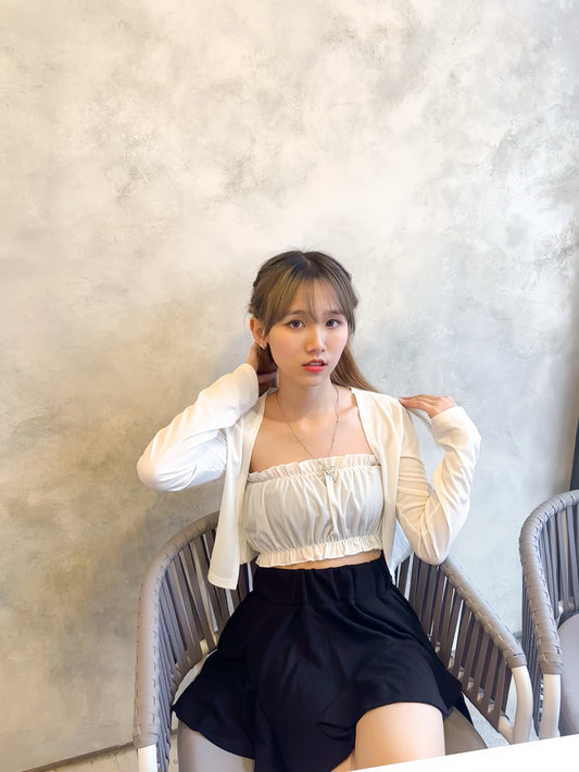 [現貨] \熱賣Come Back/ 捲邊平口Tube Top+外套Set