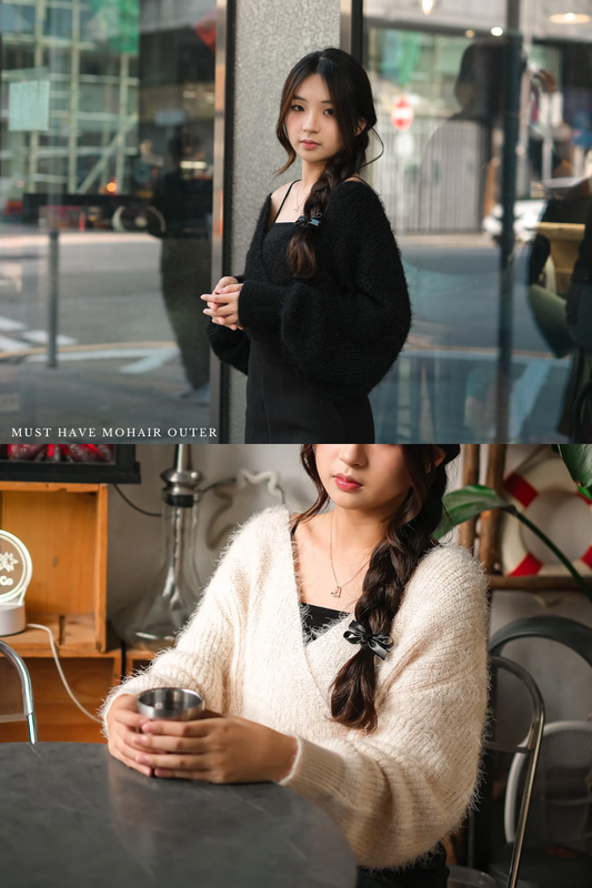 [預訂] \可愛綁結毛毛外套/ Mohair Knit Tie Outer