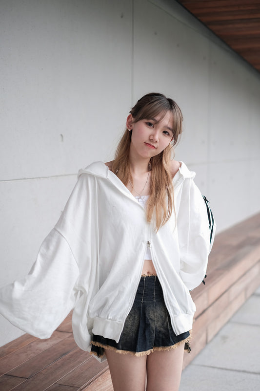 [預訂/ \Oversize/ 雙拉鍊蝴蝶結棉質外套