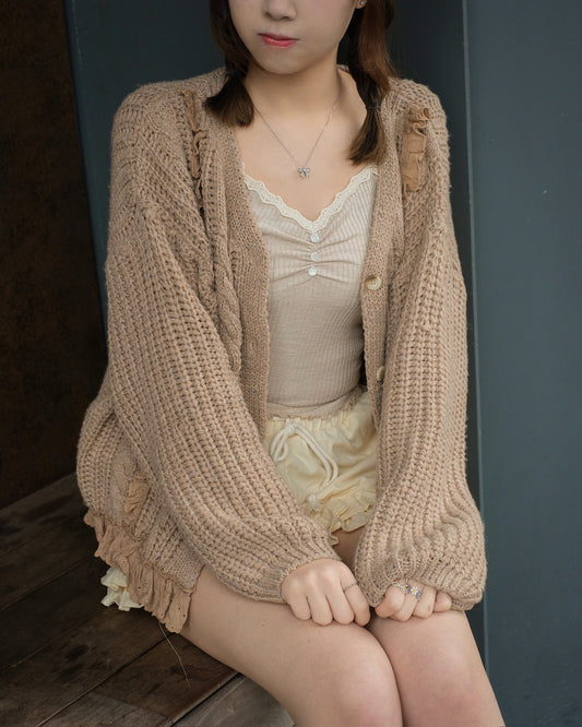[現貨] \可愛粗麻花針織/ Cropped Knit Cardigan