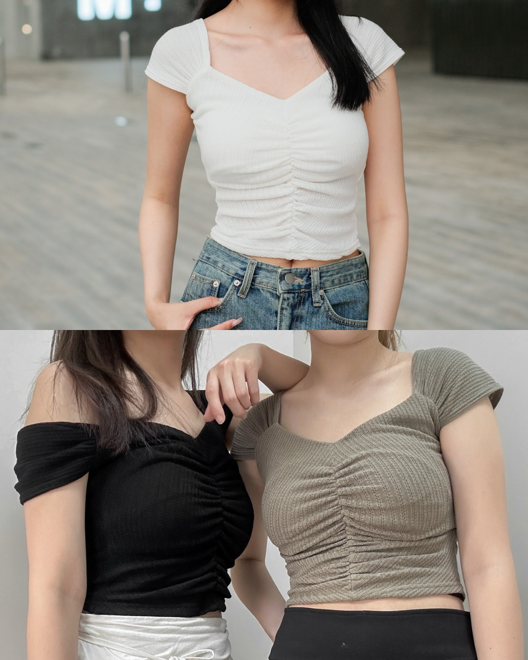 [現貨] \單着&Layer OK!!/ 2 Ways心形領皺褶Top