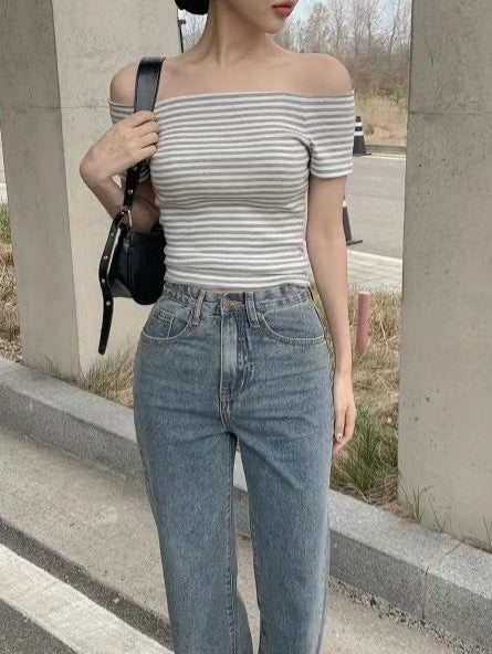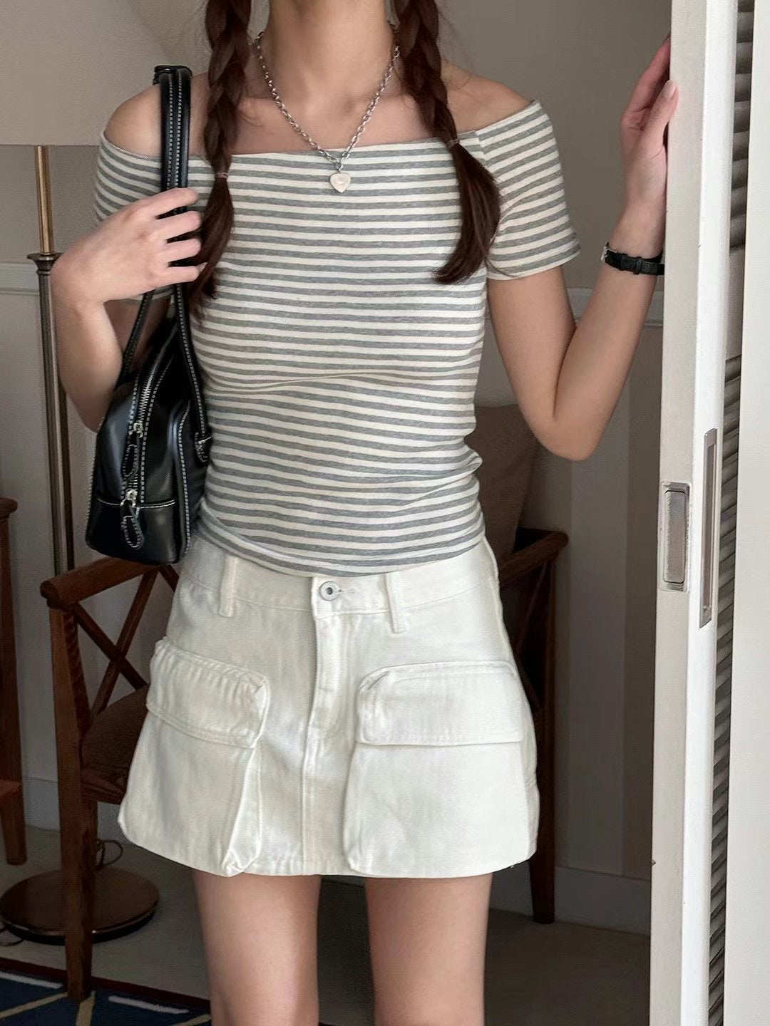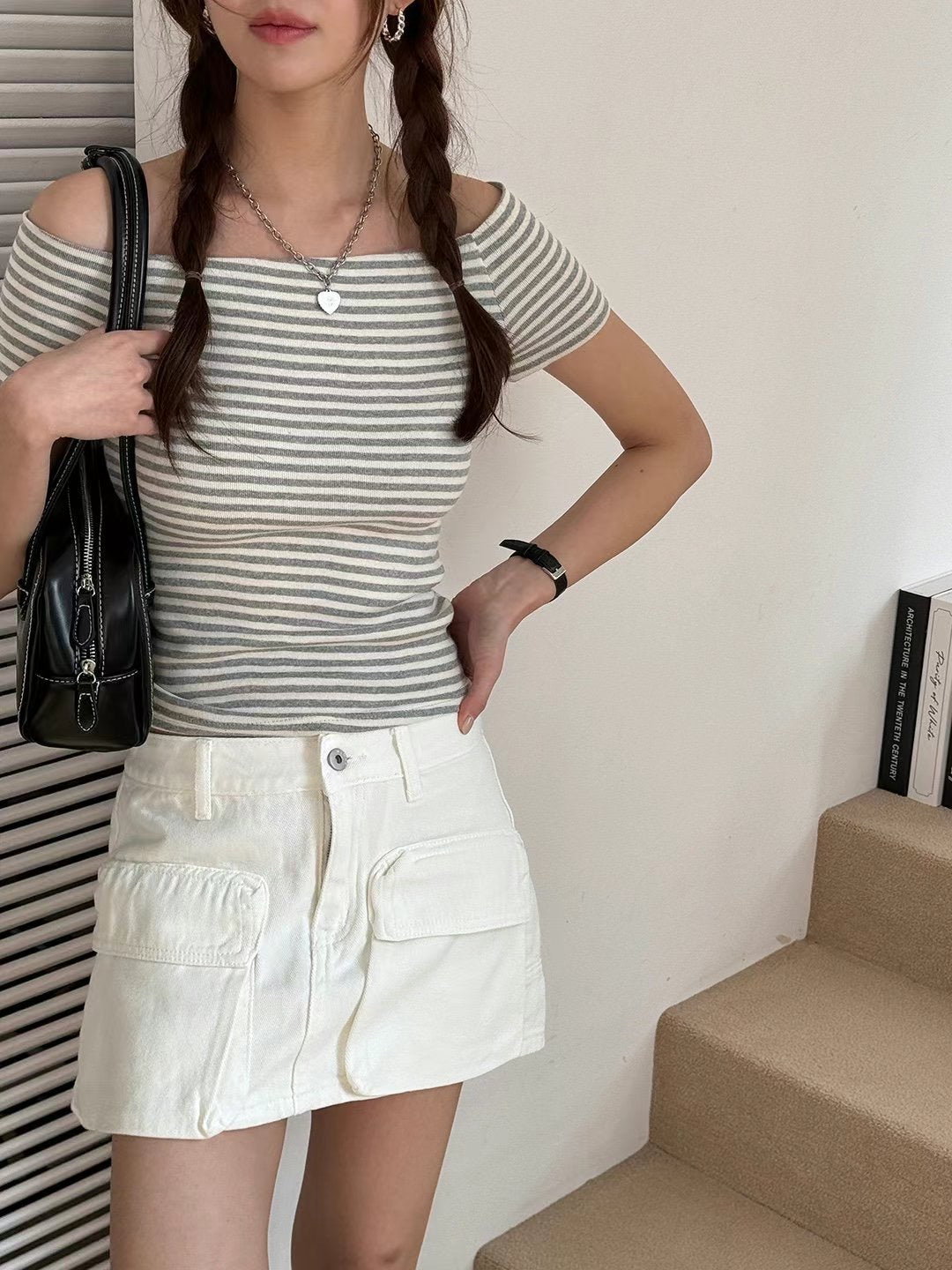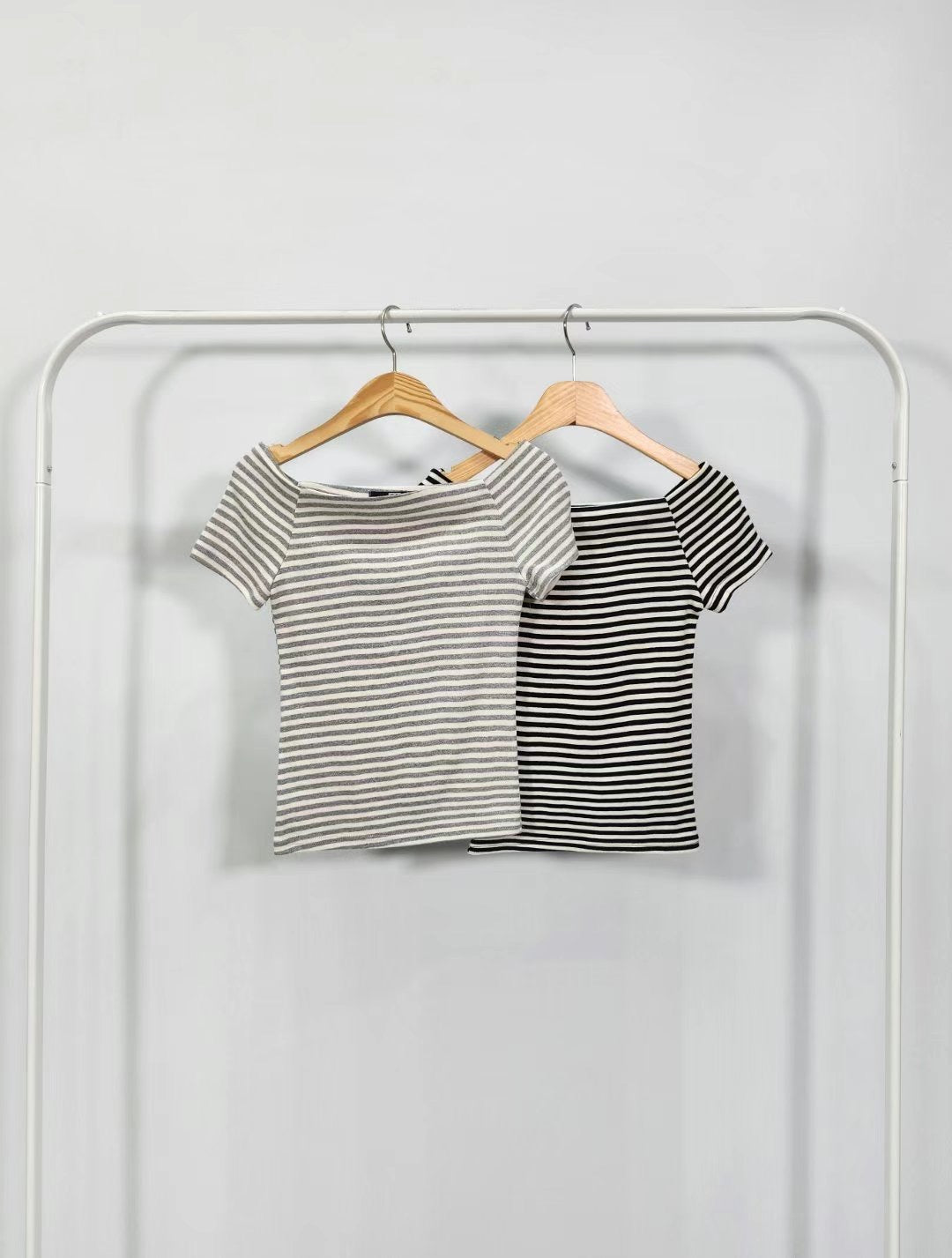 [現貨] \簡約知性Pick!!/ 間條一字膊Top