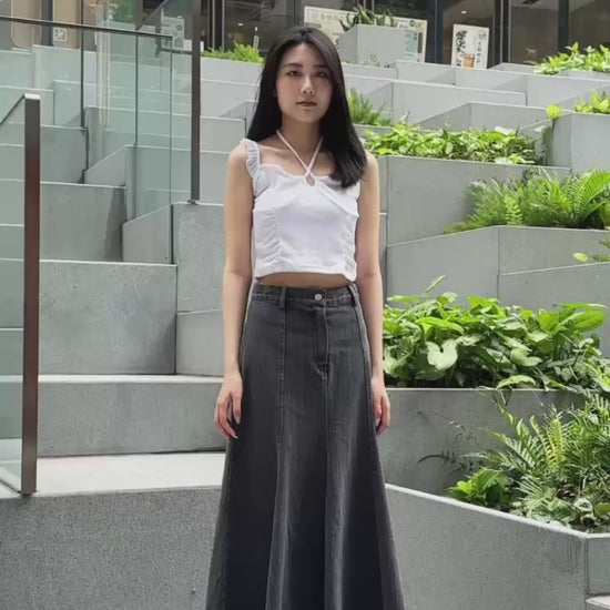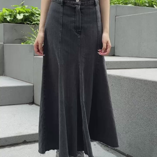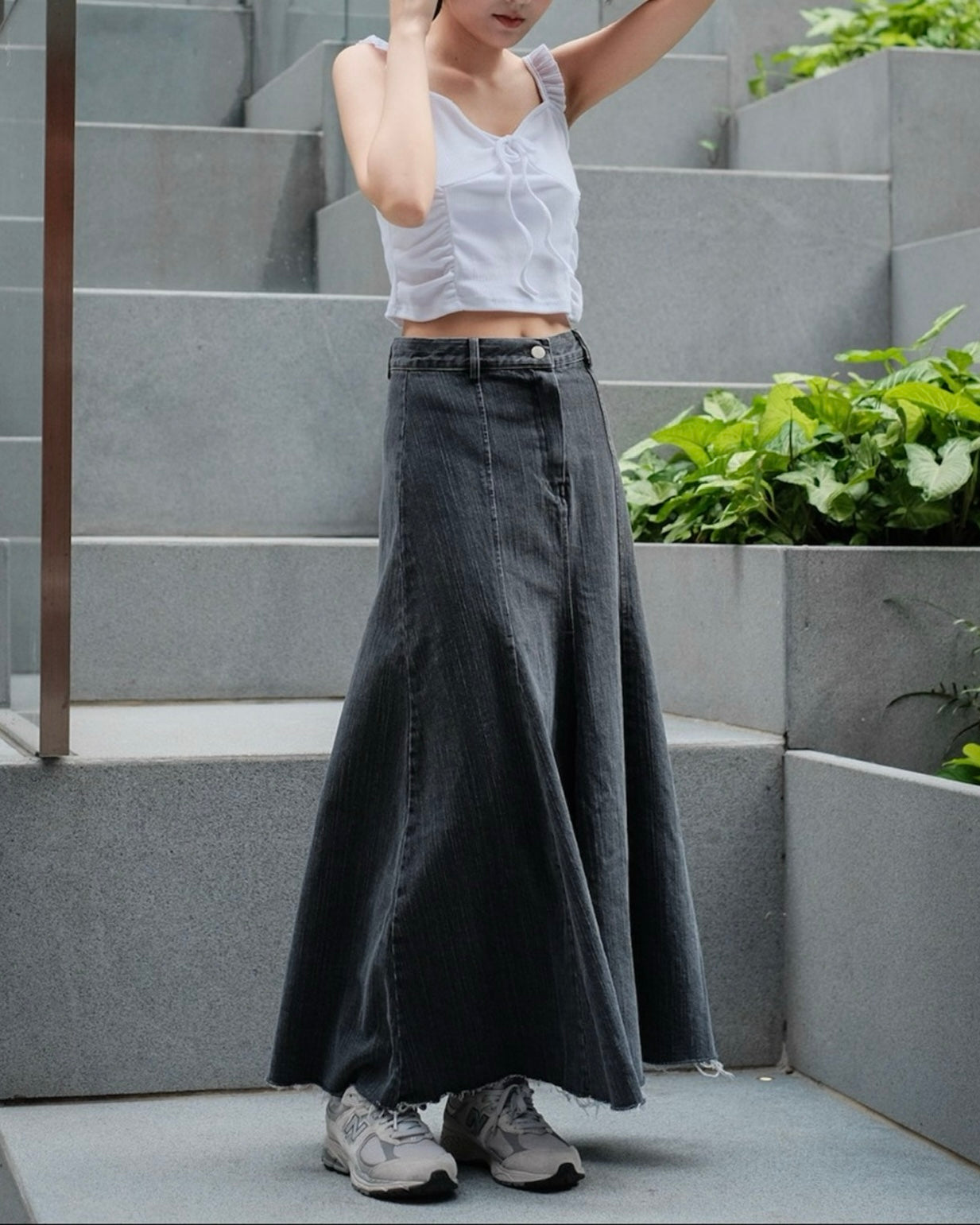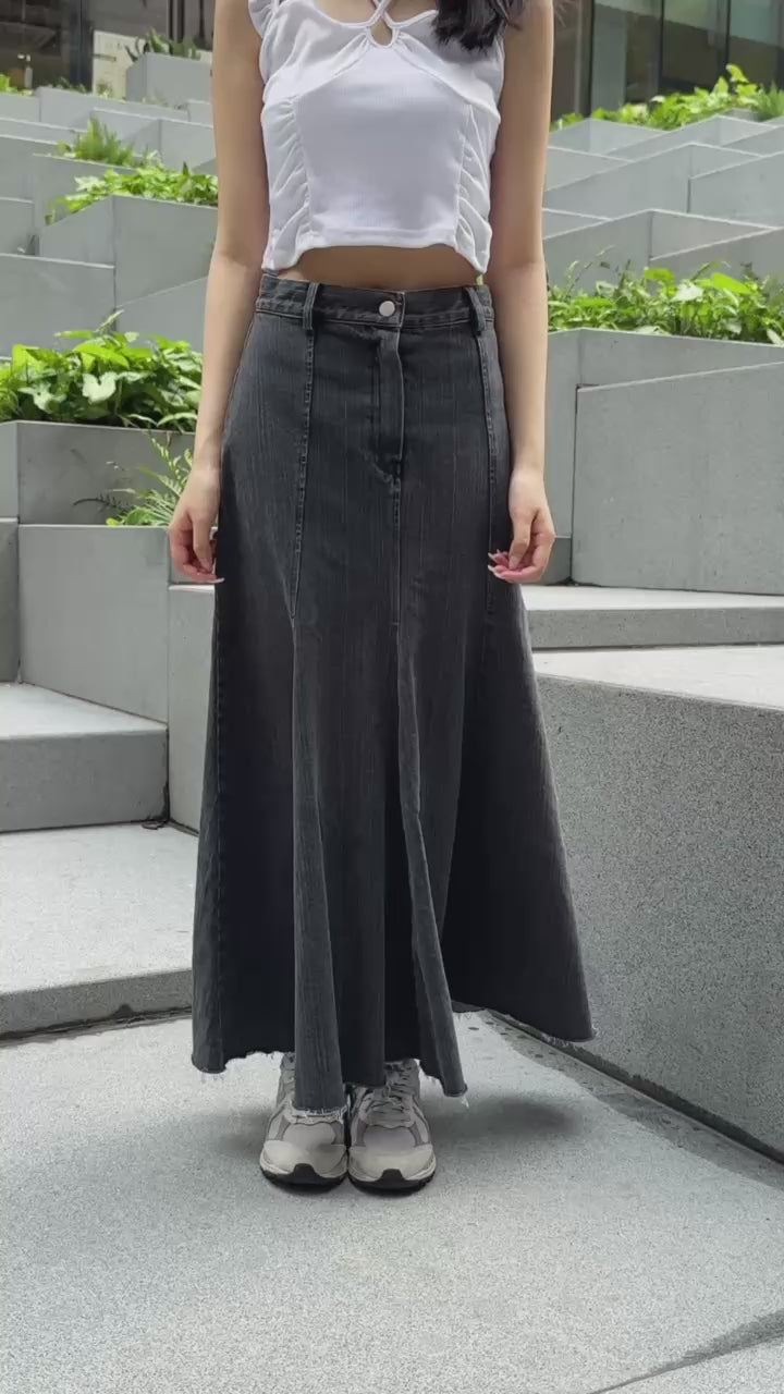 [現貨] \超美裙擺/ 復古洗水灰魚尾牛仔長裙