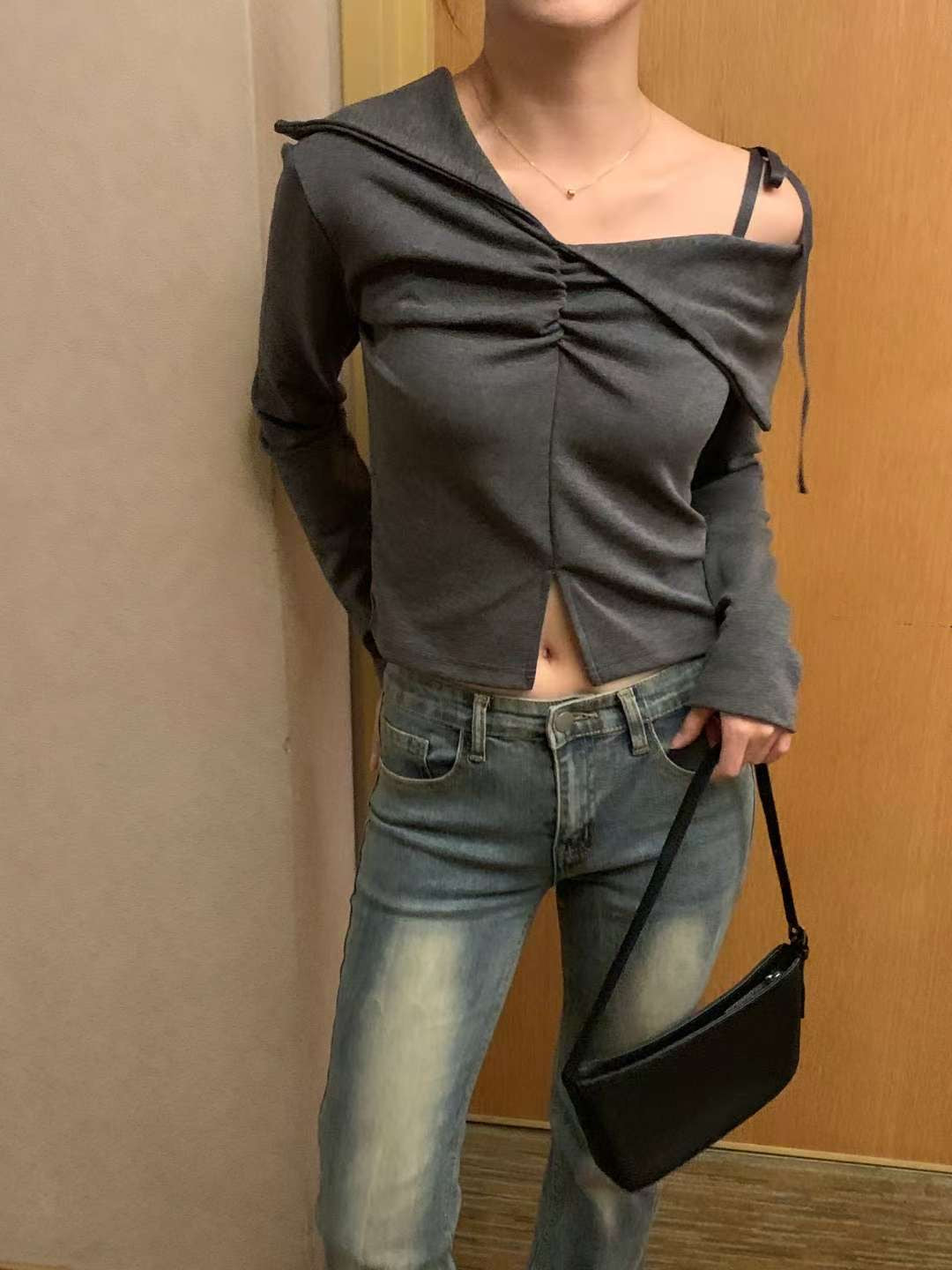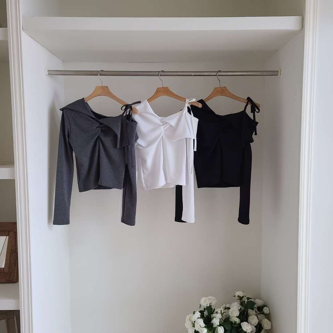 [預訂] 不規則單邊露肩皺皺Top