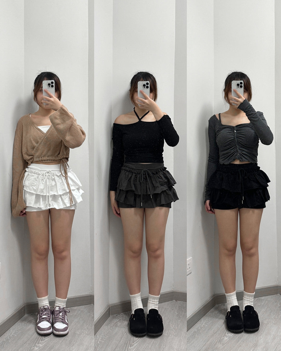 [現貨] \性價比超高🏆/ 綁結雙層蛋糕裙褲
