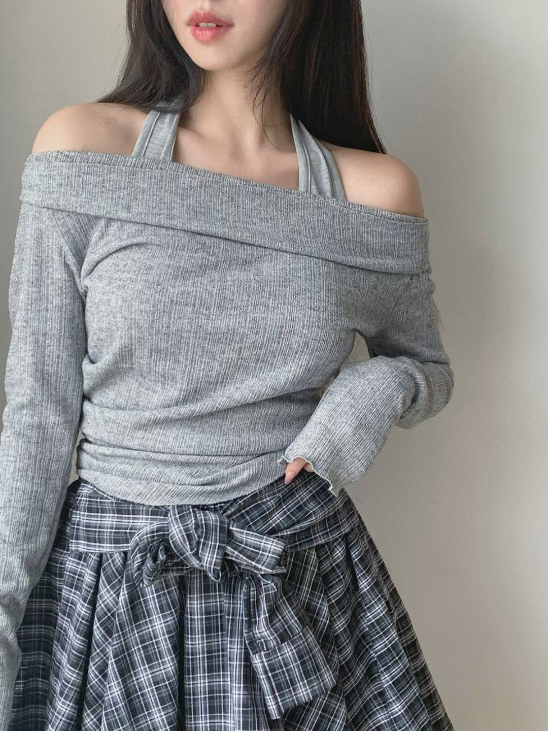 [預訂] \溫柔冬日感❄️/ 混紋掛頸Top